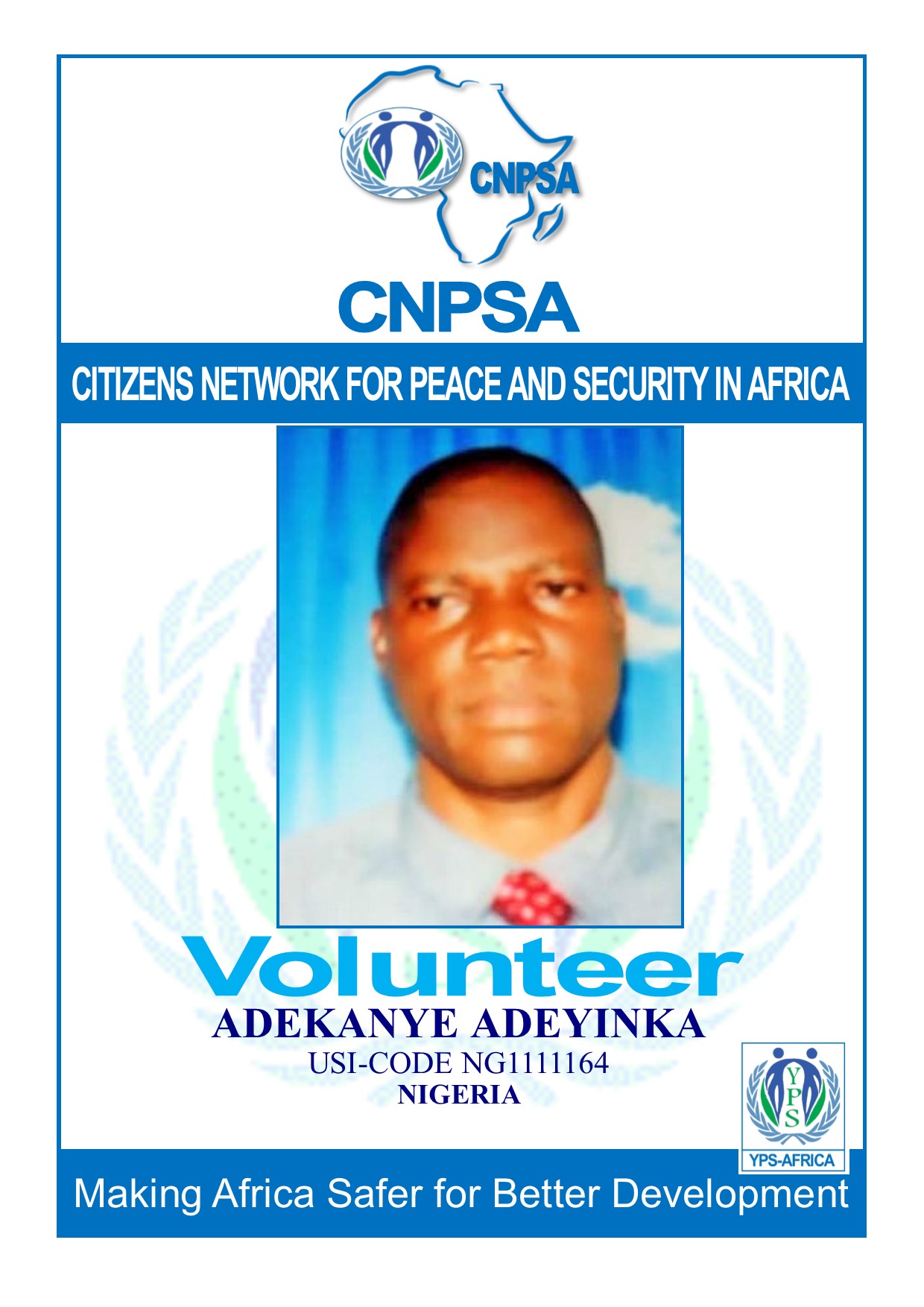 Youth for Peace and Security – Africa (YPS-Africa) is a Pan-African peacebuilding organization committed to promoting sustainable peace, security, and human rights across the continent. We empower African youth to lead grassroots peace initiatives, mediate conflicts, and prevent violence in their communities. Through training, advocacy, and partnerships, we strengthen youth leadership in conflict resolution and peace processes.Our work spans across borders, uniting young Africans under a common vision of a peaceful, secure, and united Africa. YPS-Africa amplifies youth voices in policy spaces and peace negotiations at national and continental levels. We champion the African Union’s Youth, Peace, and Security Agenda. Together, we build bridges—not barriers—across Africa’s diverse communities.YPS-Africa: Uniting African youth for peace, justice, and security.